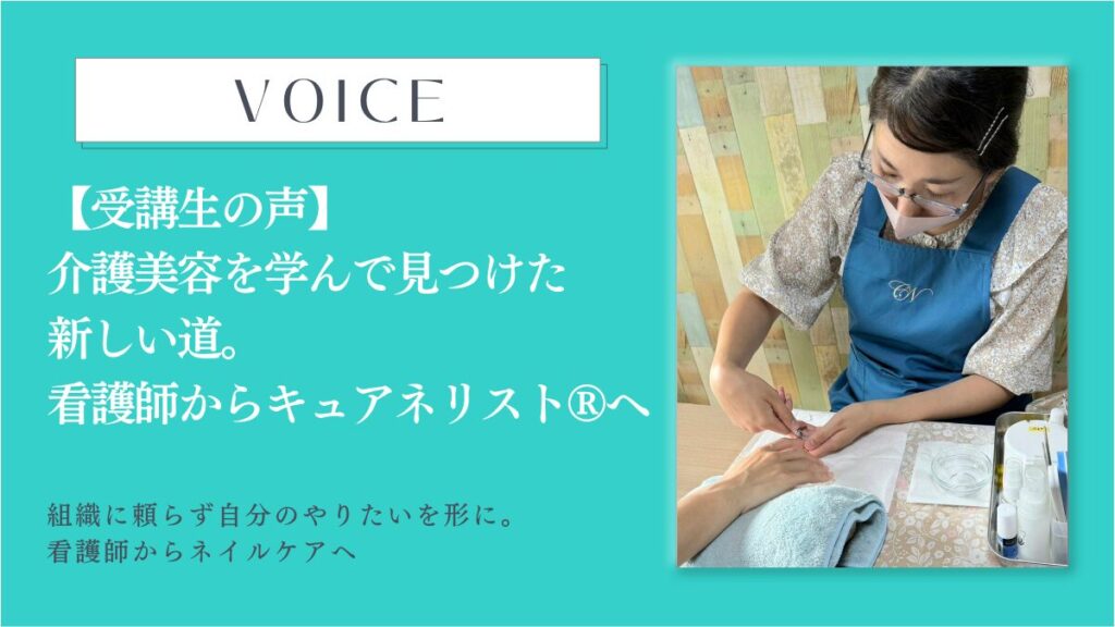 【受講生の声】介護美容を学んで見つけた新しい道。看護師からネイルケアへ