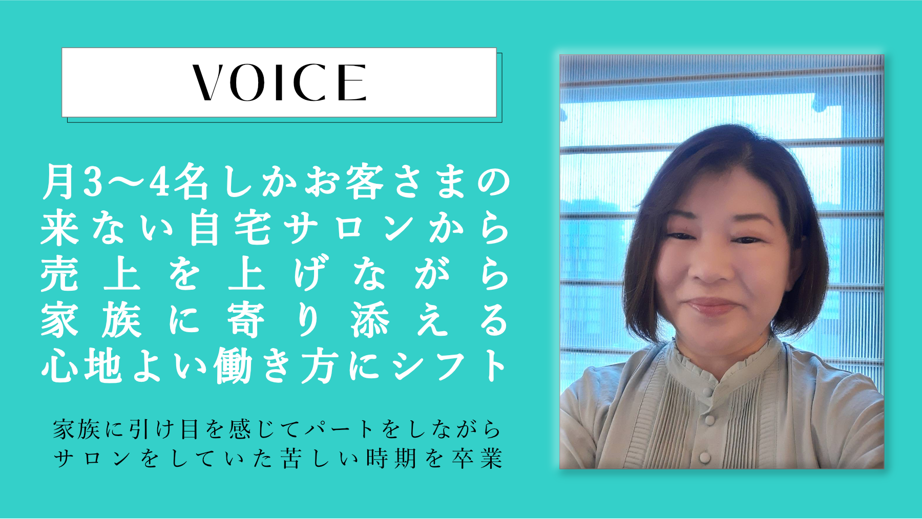 サロンが軌道にのらず、パートもしながら2足のわらじを履いてる自分は、自分が本当に望む姿なの?と考えたら……飛び込んでいました。